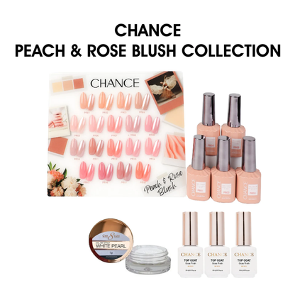 Warm, fresh, and instantly flattering. The Chance Peach & Rose Blush Collection #06 features 18 peach-forward and rosy blush shades curated for clean, bright sets that look effortless on every skin tone. Think soft peach nudes, creamy blush pinks, and rosy tones that stay polished from everyday wear to special occasions.